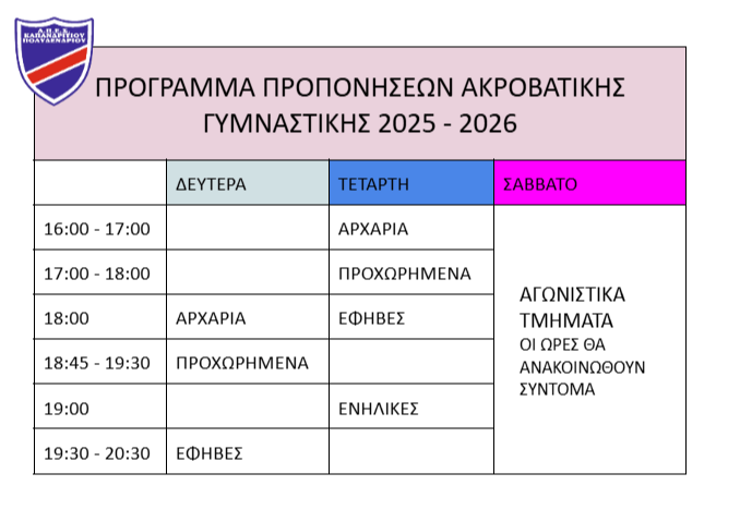 Ακροβατική Γυμναστική: 698 0152 783, 697 6628 512