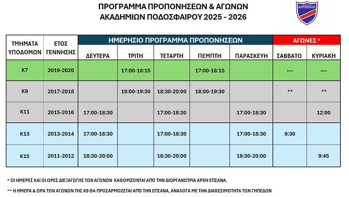 Πληροφορίες και εγγραφές για την περίοδο 2025-2026 παρακαλώ επικοινωνήστε στα παρακάτω τηλέφωνα