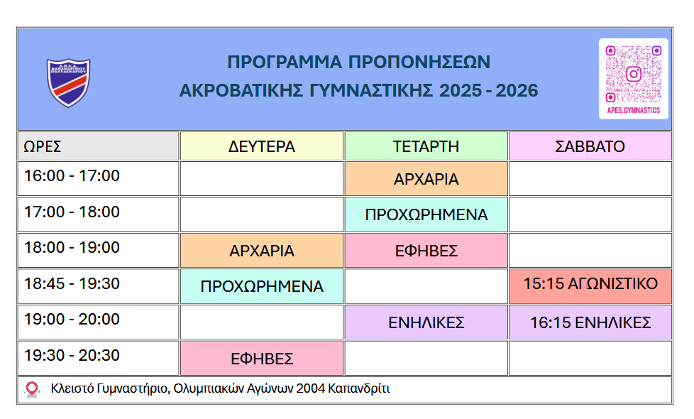 Ακροβατική Γυμναστική: 698 0152 783, 697 6628 512
